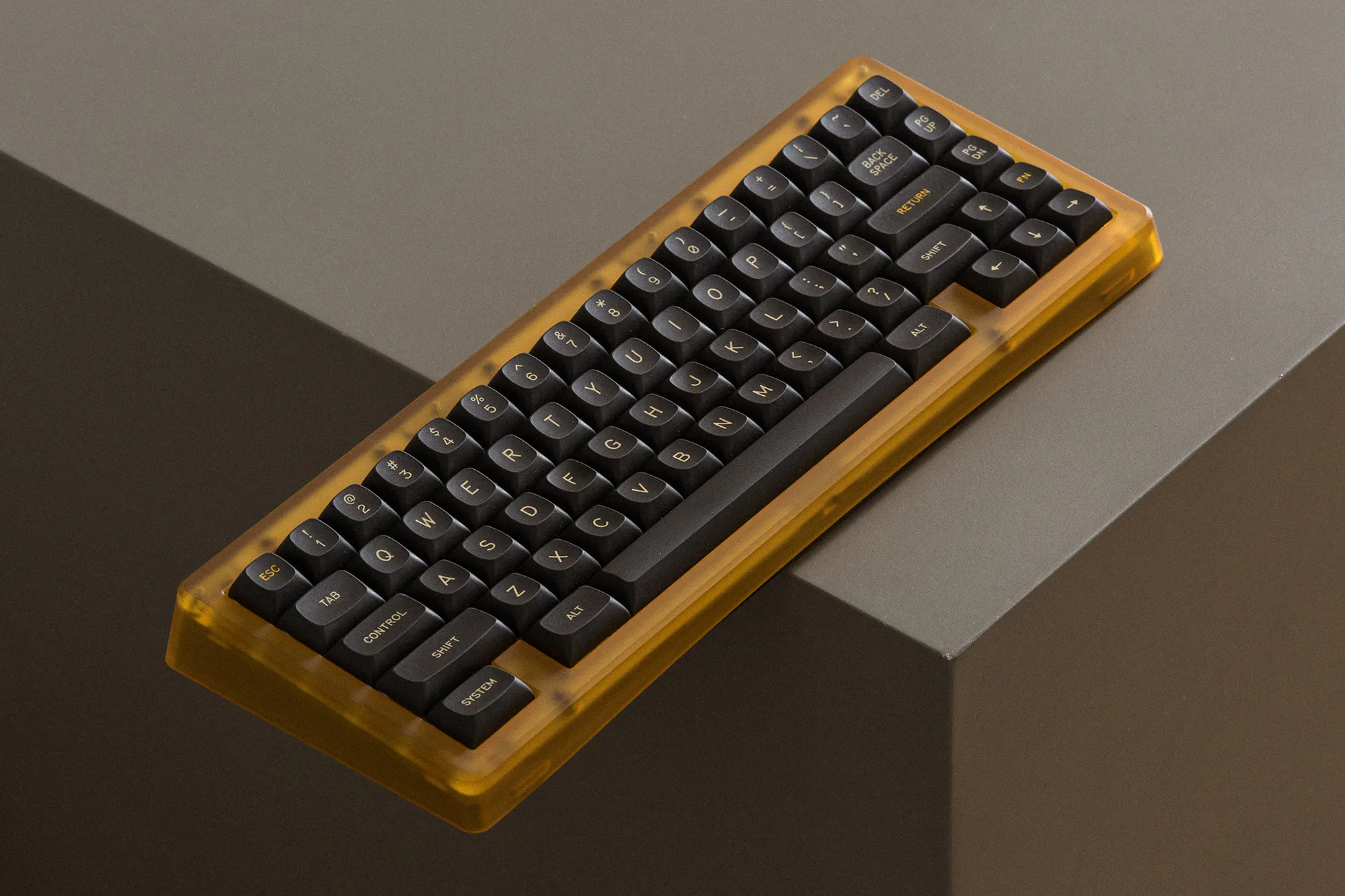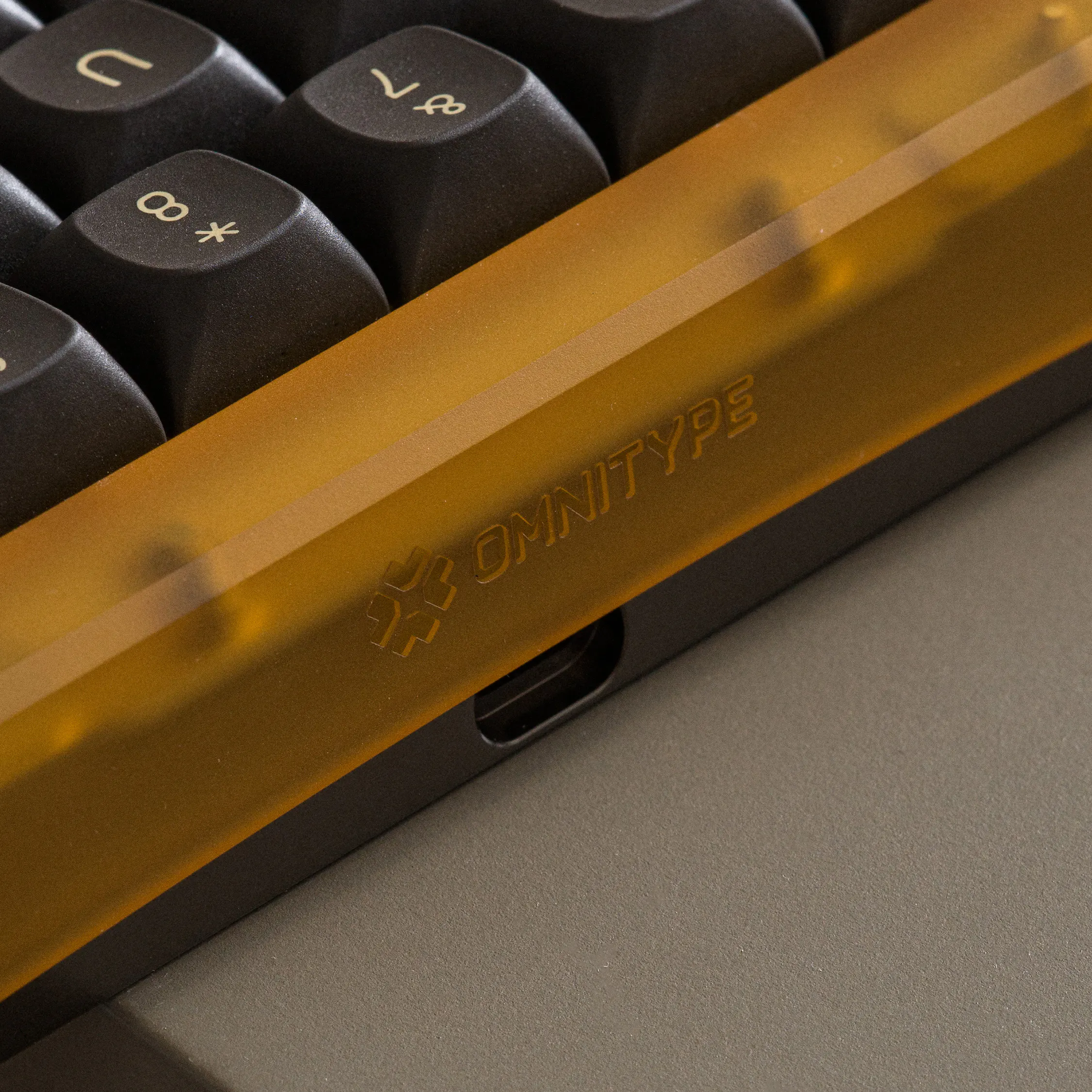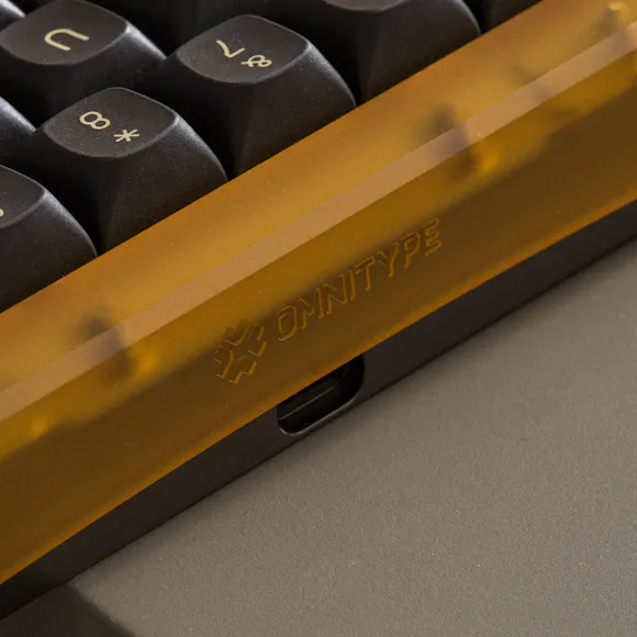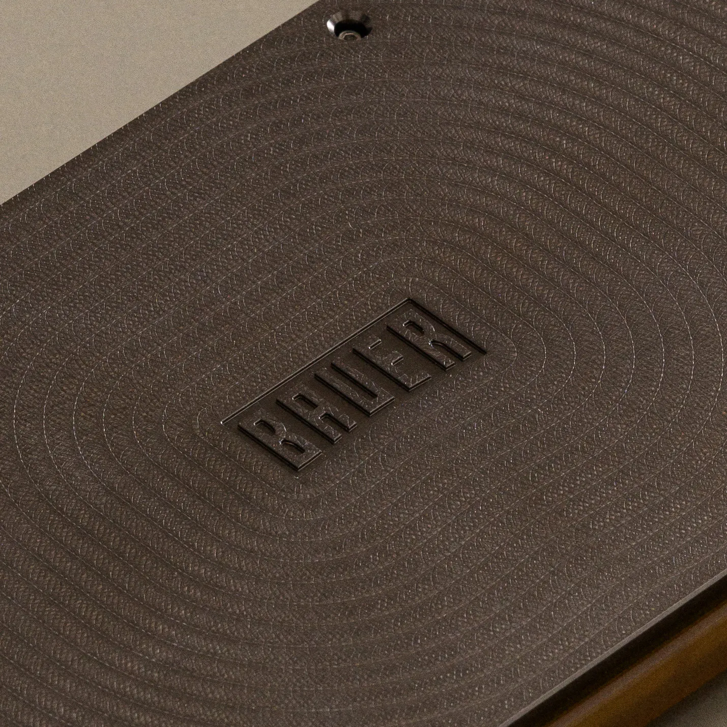 Before the group buy opens, we're running a raffle for this limited colorway that won't be part of the main offering: an amber PC top paired with an aluminum bottom that's anodized dark gray and left with the machine marks fully exposed on the exterior, concentric rings centered around the Bauer logo. No attempt to hide how it was made.